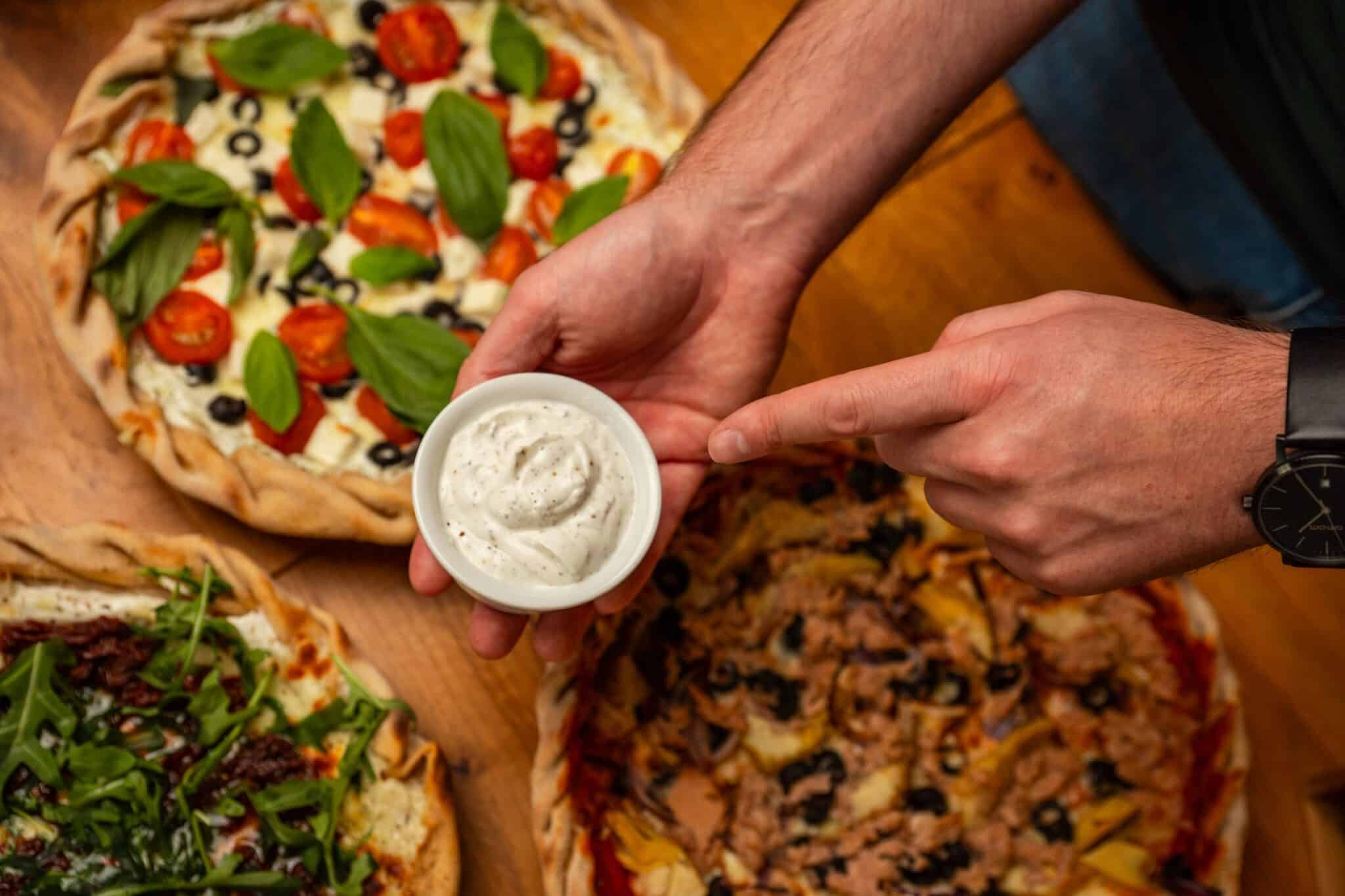 Sos czosnkowy na bazie skyru to świetne uzupełnienie pizzy